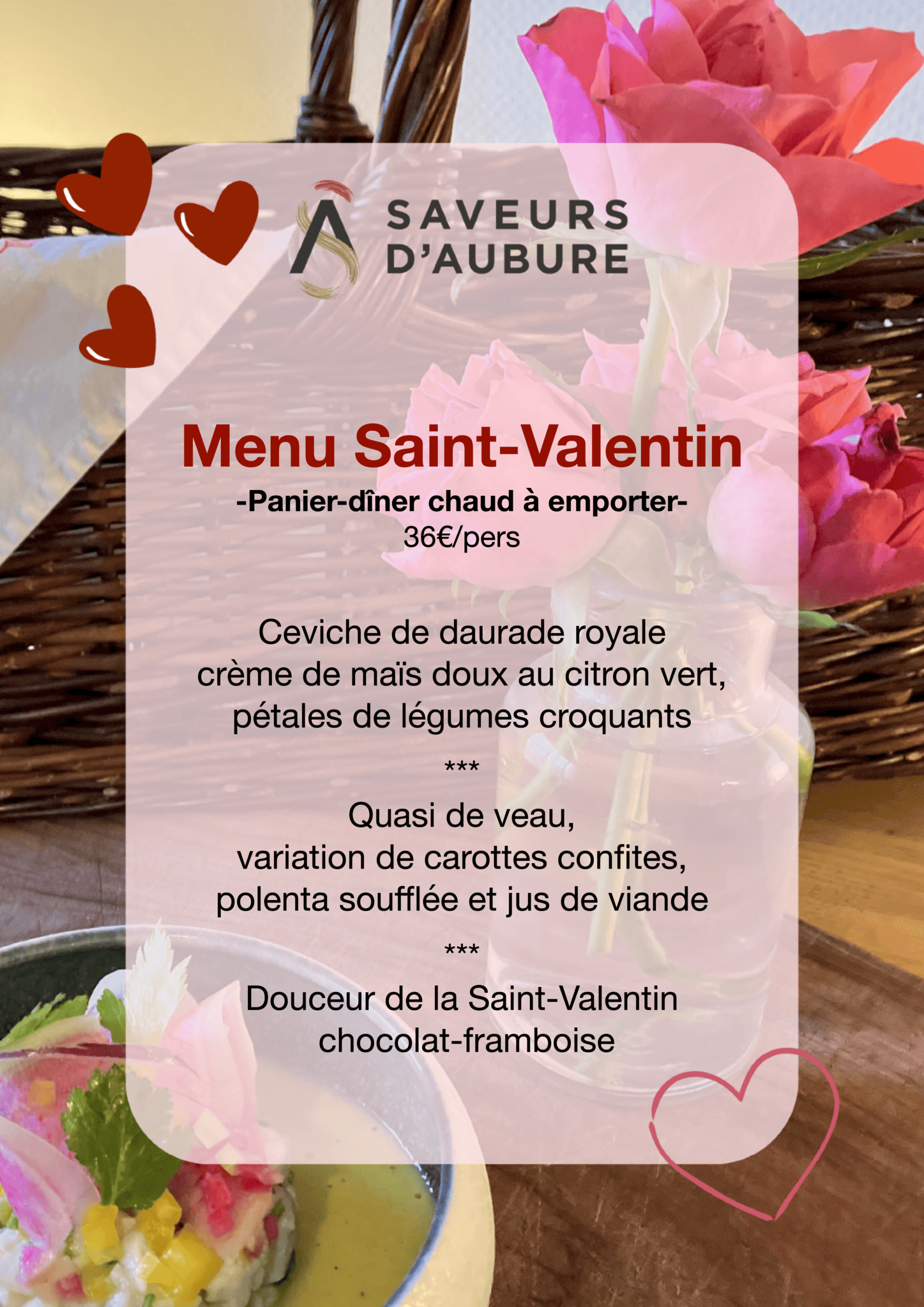 Dîner à retirer « chaud, prêt à déguster « le Samedi 14 février à 19h, 19h30 ou 20h à Aubure, (Livraison possible à 20h30)